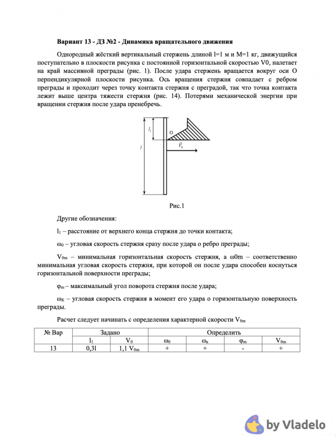 ДЗ 1: Динамика материальной точки + Динамика вращательного движения вариант 13