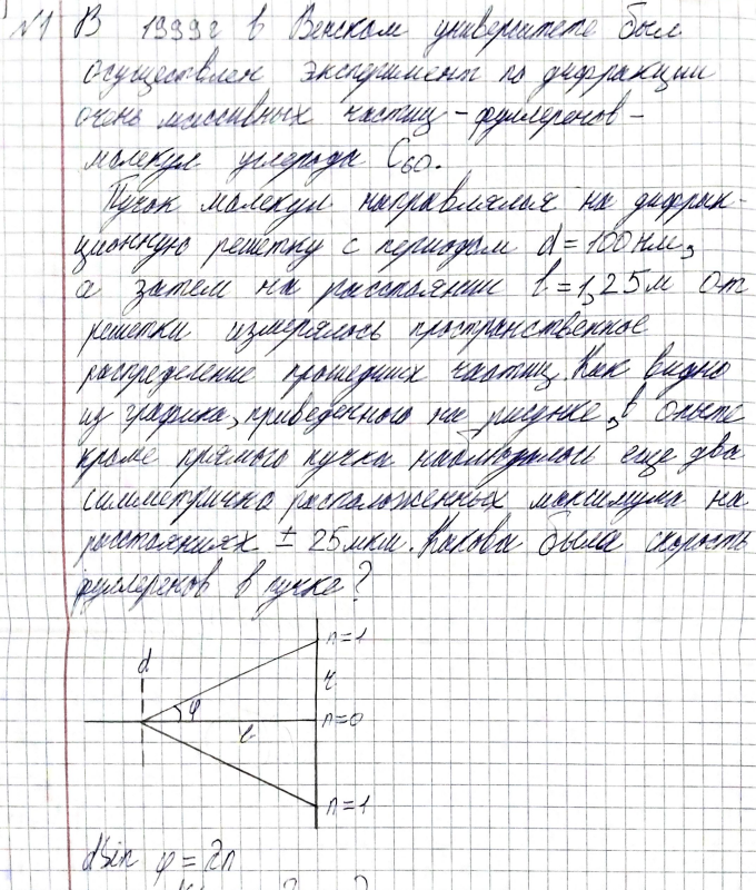 В 1999г. в Венском университете был осуществлен эксперимент по дифракции очень массивных частиц - фуллеренов – молекул углерода С60 . Частица находится в одномерной прямоугольной потенциальной яме с бесконечно высокими стенками..