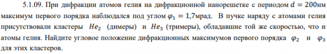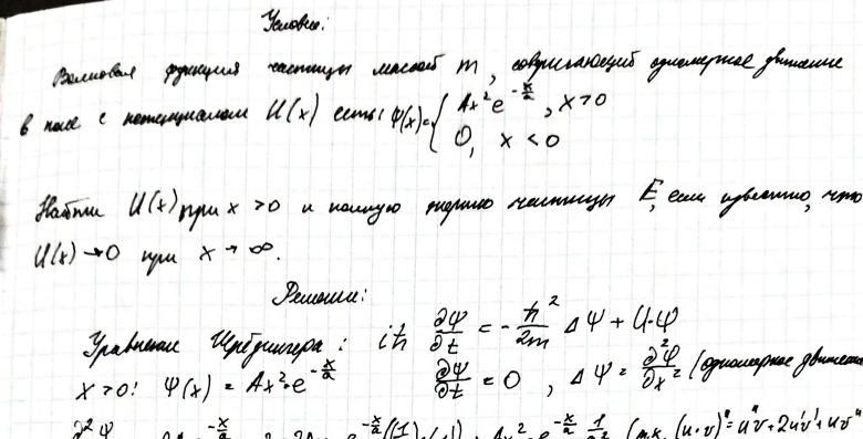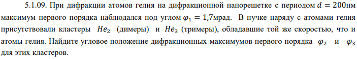 При дифракции атомов гелия на дифракционной нанорешетке с периодом 𝑑 = 200нм максимум первого порядка наблюдался под углом 𝜑1 = 1,7мрад. Волновая функция частицы массой m , совершающей одномерное движение в поле с потенциалом U x( ) , есть:.