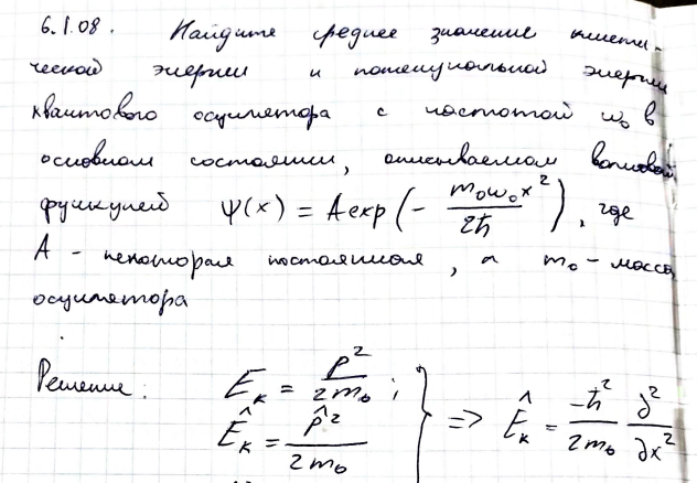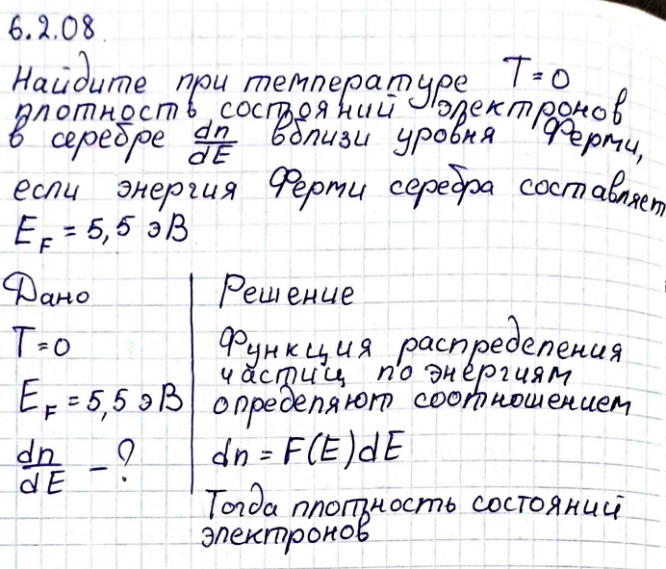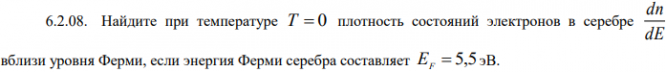 Найдите средние значения кинетической и потенциальной энергий квантового осциллятора с частотой 0 в основном состоянии, описываемом волновой функцией. Найдите при температуре T  0 плотность состояний электронов в серебре dE dn вблизи уровня Ферми, если энергия Ферми серебра составляет EF  5,5 эВ .
