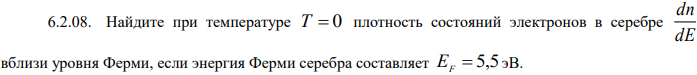 Найдите средние значения кинетической и потенциальной энергий квантового осциллятора с частотой 0 в основном состоянии, описываемом волновой функцией. Найдите при температуре T 0 плотность состояний электронов в серебре dE dn вблизи уровня Ферми, если энергия Ферми серебра составляет EF 5,5 эВ .