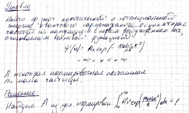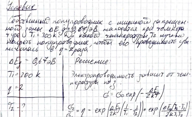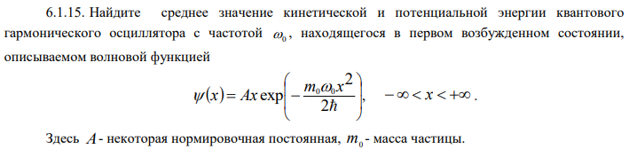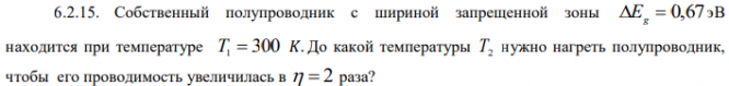 Найдите среднее значение кинетической и потенциальной энергии квантового гармонического осциллятора с частотой 0 , находящегося в первом возбужденном состоянии, описываемом волновой функцией. Собственный полупроводник с шириной запрещенной зоны E g  0,67 эВ находится при температуре T1  300 𝐾. До какой температуры T2 нужно нагреть полупроводник, чтобы его проводимость увеличилась в   2 раза?.
