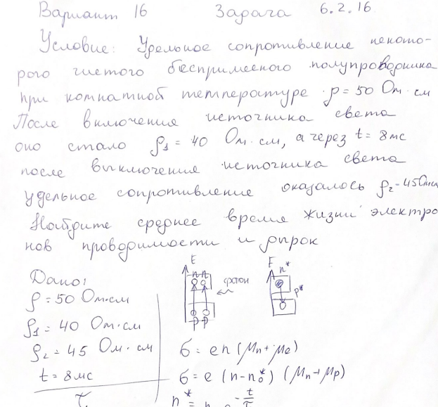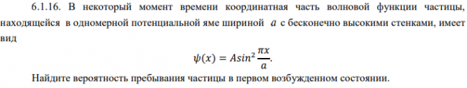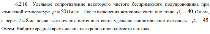Удельное сопротивление некоторого чистого беспримесного полупроводника при комнатной температуре 50 Ом∙см. После включения источника света оно стало 1 40 Ом∙см, а через t 8 мс после выключения источника света удельное сопротивление оказалось 2 45 Ом∙см. Найдите среднее время жизни электронов проводимости и дырок В некоторый момент времени координатная часть волновой функции частицы, находящейся в одномерной потенциальной яме шириной a с бесконечно высокими стенками, имеет вид.