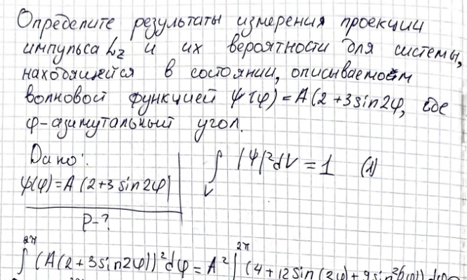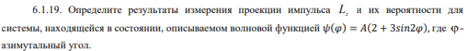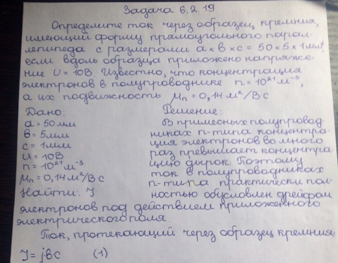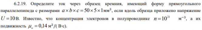 Определите ток через образец кремния, имеющий форму прямоугольного параллелепипеда с размерами, если вдоль образца приложено напряжение U 10 В. Известно, что концентрация электронов в полупроводнике 21 n 10 м −3 , а их подвижность n  0,14 м 2 /( В∙с) Определите результаты измерения проекции импульса L z и их вероятности для системы, находящейся в состоянии, описываемом волновой функцией 𝜓(𝜑) = 𝐴(2 + 3𝑠𝑖𝑛2𝜑), где - азимутальный угол..