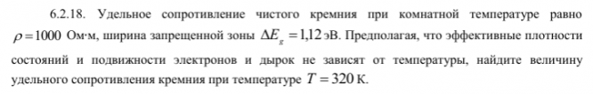 Задание 6.2.18 Удельное сопротивление чистого кремния при комнатной температуре равно