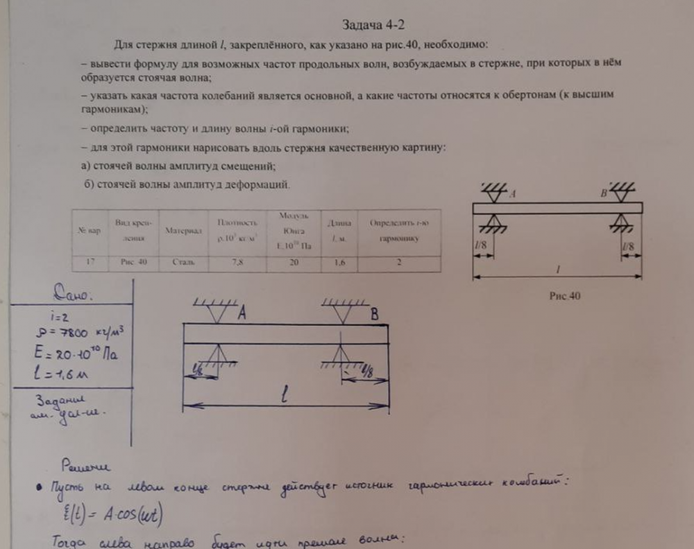 | № вар. | Вид крепления | Материал | Плотность ρ, 103 кг/м3 | Модуль Юнга Е, 1010Па | Длина l, м | Определить i-ю гармонику |