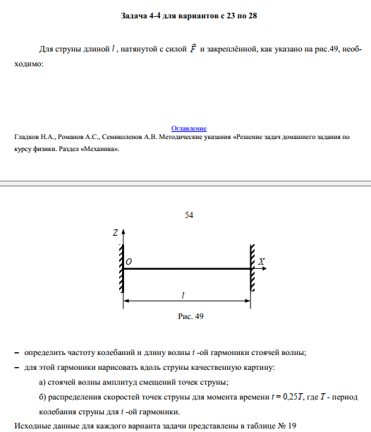 Для струны длиной l , натянутой с силой F и закреплённой, как указано на рис.49, необходимо: