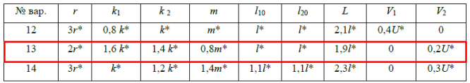 31 колебания происходят под действием пружин, соединенных последовательно. Массой пружин можно пренебречь. На рис. 28, 29 КС имеет горизонтальное расположение, а на рис. 30, 31 вертикальное расположение в поле силы тяжести. Длины 1-ой и 2-ой пружин в недеформированных состояниях равны l10 и l20. На рис.28, 30 L - длина каждой пружины в деформированном состоянии при t=0. На рис.29, 31 L - общая длина двух пружин в деформированном состоянии при t=0. Возможные векторы начальной скорости шайбы равны V1 , V2 . Шайбу, находящуюся в положении равновесия, смещают до расстояния L, а затем импульсом придают ей в начальный момент времени t=0 скорость V1 или V2 , в соответствии с заданием (см. таблицы № 10 - 13). В результате КС приходит в колебательное движение.