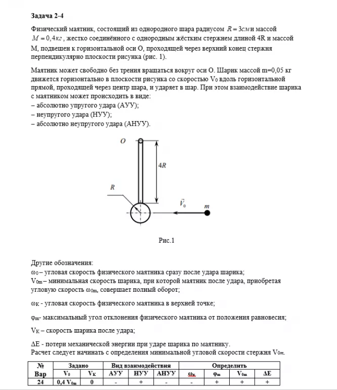 ДЗ 1: Динамика материальной точки + Динамика вращательного движения вариант 24