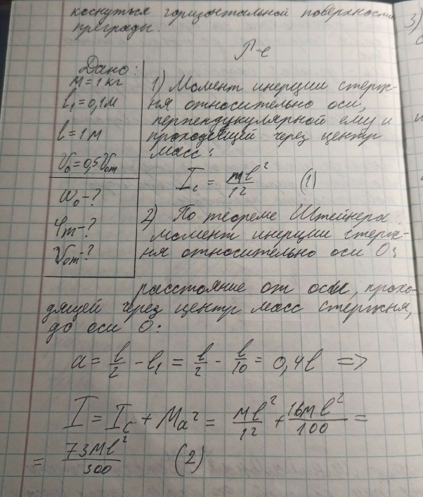 ωК – угловая скорость стержня в момент его удара о горизонтальную поверхность преграды.