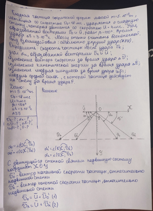 F - модуль средней силы, с которой частица действует на стенку во время удара;