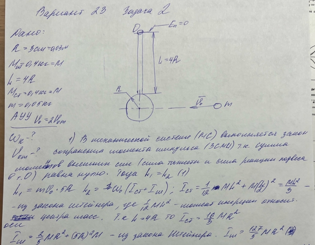 Вариант 23 - Задача №2 - Динамика вращательного движения