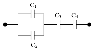 • 3.5. Четыре конденсатора С1 = 0,1 мкФ, С2 = 0,5 мкФ, С3 = 0,2 мкФ и С4 = 0,3 мкФ соединены между собой так, как показано на рисунке. Определить заряды конденсаторов и разности потенциалов между их обкладками, если разность потенциалов между точками А и В равна 400 В.