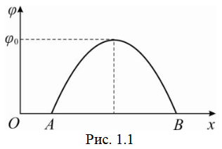 - 1.2. Прямолинейно движущийся электрон влетает в электрическое поле, вид потенциала которого показан на рис. 1.1. В точке В электрон вылетает из поля. Изменяется ли скорость частицы в точке В и время пролета расстояния АВ, если вместо электрона полетит позитрон?