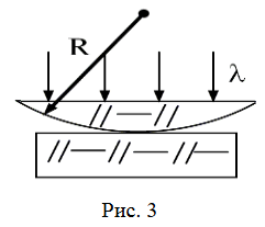 нормали к горизонтальной поверхности линзы (рис. 3). Диаметр четвертого темного кольца, считая центральное темное кольцо нулевым, равен 9 мм. Найти длину волны падающего света.