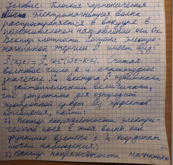 Плоская гармоническая электромагнитная волна распространяется в вакууме в положительном направлении оси ОХ. 8 страниц дз.