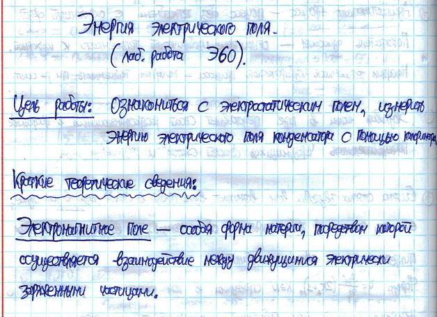 Лабораторная работа Э: Энергия электрического поля вариант 60