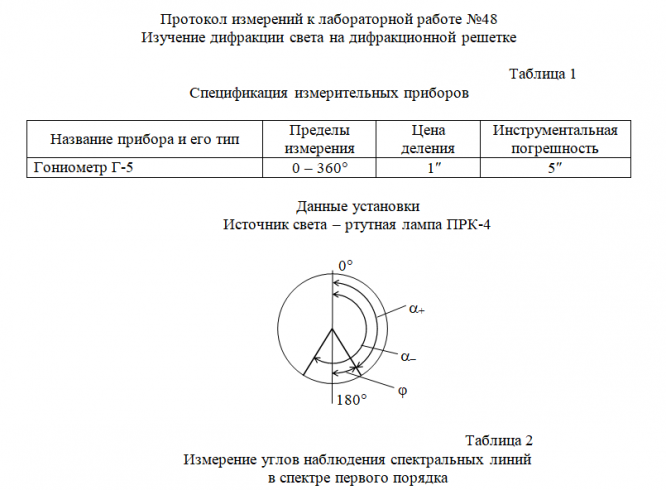 Лабораторная работа 48: Изучение дифракции света на дифракционной решетке