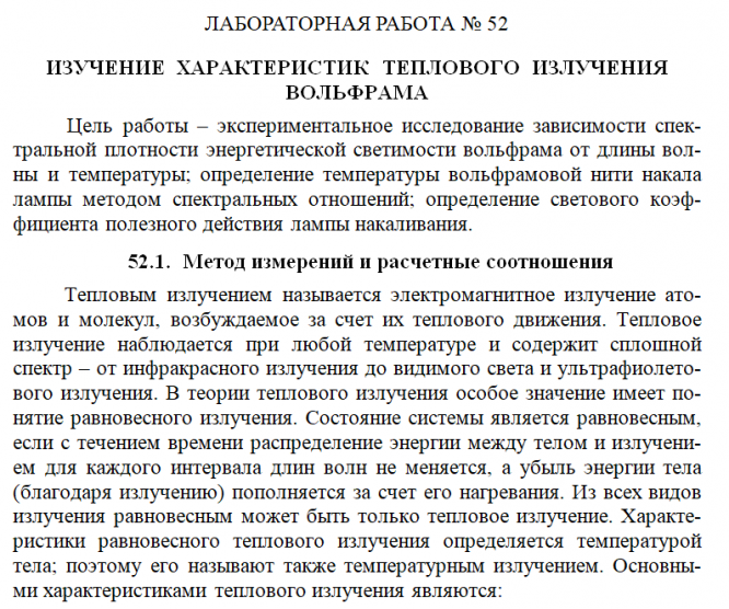 Главная » Учебные материалы » Физика » Лабораторные работы » НИУ «МЭИ» » 4 семестр » Номер 52 » Изучение характеристик теплового излучения вольфрама