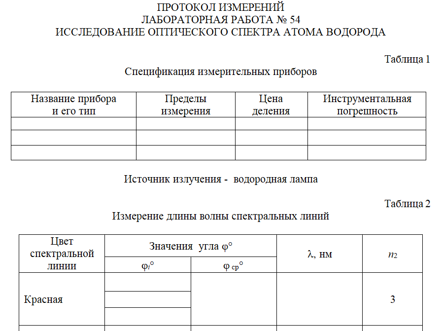 Лабораторная работа 54: Исследование оптического спектра водорода