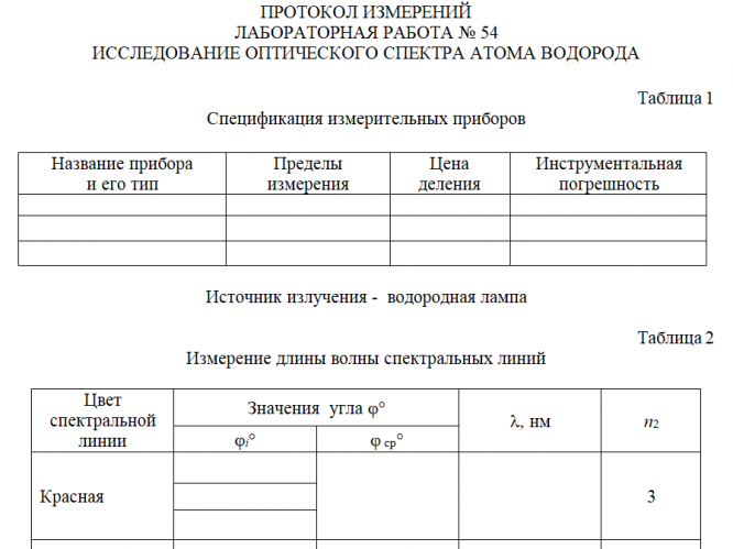 Главная » Учебные материалы » Физика » Лабораторные работы » НИУ «МЭИ» » 4 семестр » Номер 54 » Исследование оптического спектра водорода