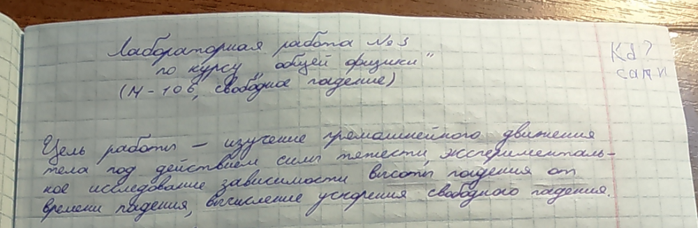 Лабораторная работа М: Свободное падение вариант 106