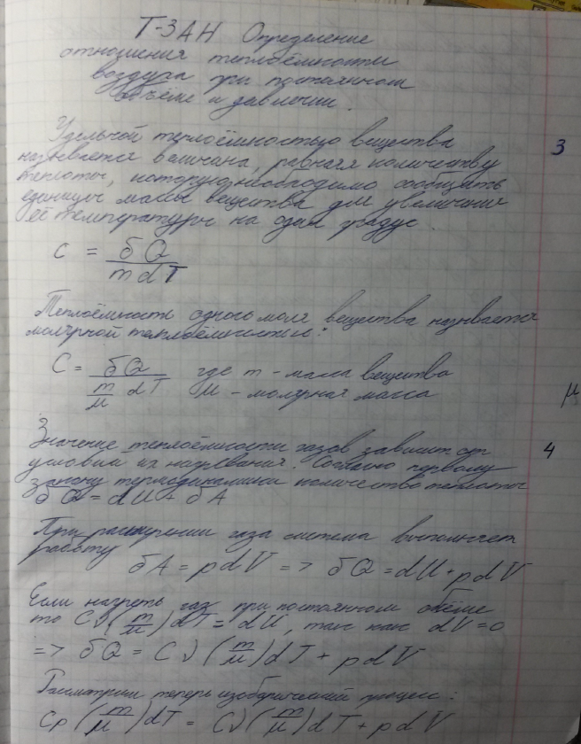 Лабораторная работа Т: Определение отношения теплоемкости воздуха при постоянном объеме и давлении вариант 3