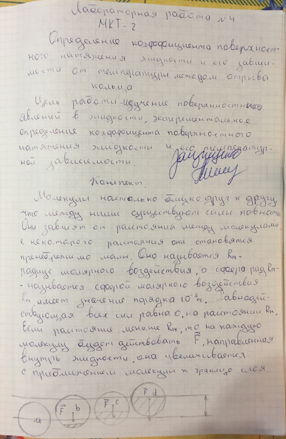 Главная » Учебные материалы » Физика » Лабораторные работы » МГТУ им. Н.Э.Баумана » 2 семестр » Номер МКТ » Вариант 2 » Определение коэффициента поверхностного натяжения жидкости и его зависимости от температуры методом отрыва кольца