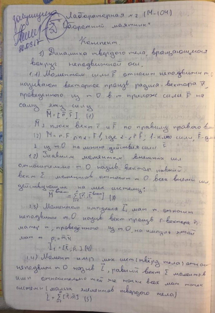 Для студентов МГТУ им. Н.Э.Баумана по предмету ФизикаОборотный маятникОборотный маятник