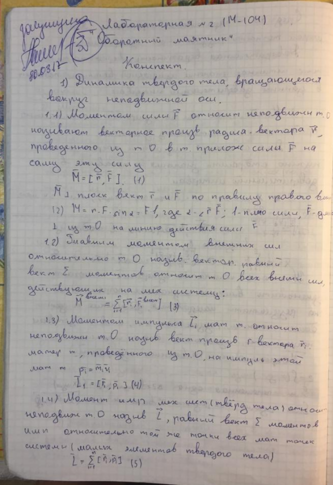 Лабораторная работа М: Оборотный маятник вариант 104