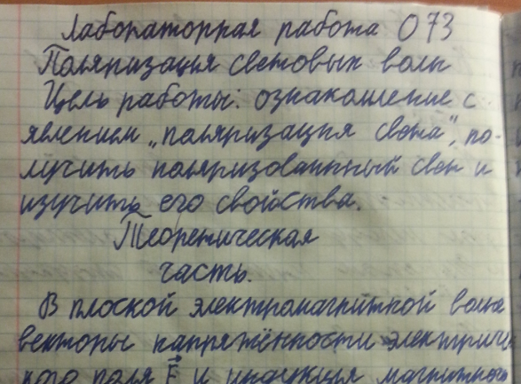 Лабораторная работа О: Поляризация световых волн вариант 73
