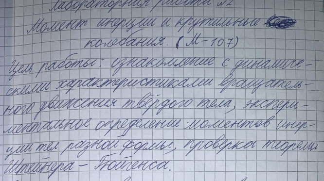 Лабораторная работа М: Момент инерции и крутильные колебания вариант 107