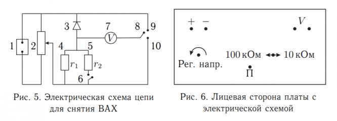- Снятие зависимости тока I от напряжения V и построение ВАХ выпрямительного диода.