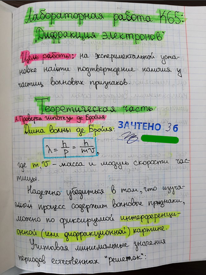 Для студентов МГТУ им. Н.Э.Баумана по предмету ФизикаДифракция электроновДифракция электронов