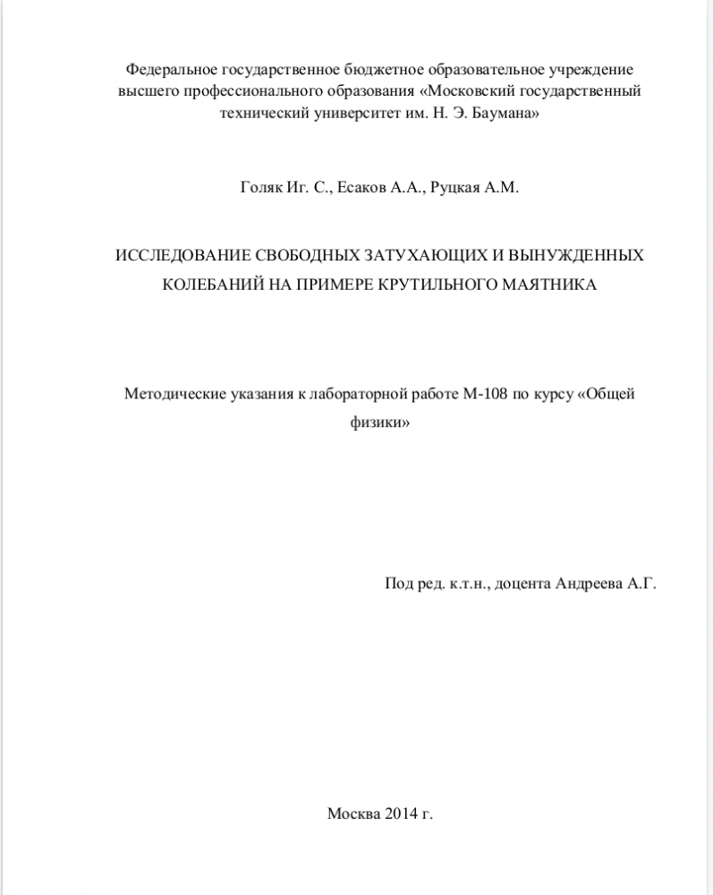 Для студентов МГТУ им. Н.Э.Баумана по предмету ФизикаИсследование свободных затухающих колебаний и вынужденных колебаний на примере крутильного маятникаИсследование свободных затухающих колебаний и вынужденных колебаний на примере крутильного маятника