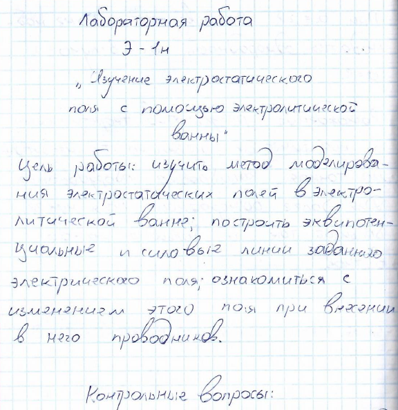 Лабораторная работа Э: Изучение электростатического поля с помощью электрической ванны вариант 1