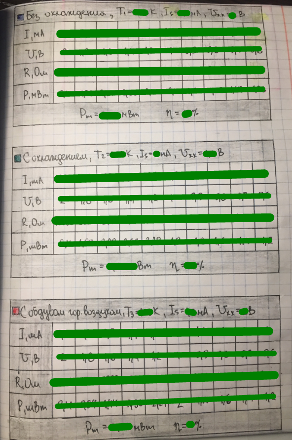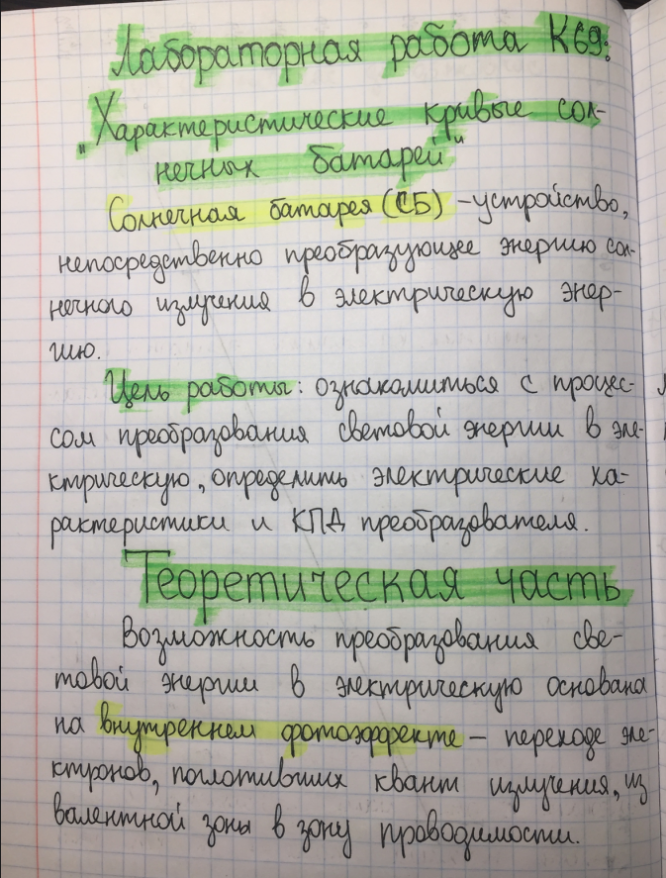 Лабораторная работа К: Характеристические кривые солнечных батарей вариант 69
