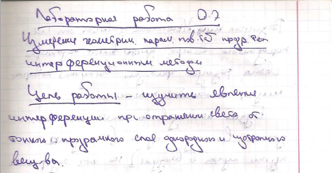 Главная » Учебные материалы » Физика » Лабораторные работы » МГТУ им. Н.Э.Баумана » 3 семестр » Номер О » Вариант 7 » Интерференция в тонких пленках. Определение геометрических параметров поверхностей прозрачных тел интерференционным методом