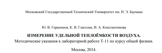 Для студентов МГТУ им. Н.Э.Баумана по предмету ФизикаИзмерение удельной теплоемкости воздухаИзмерение удельной теплоемкости воздуха