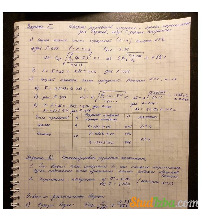 Лабораторная работа М: Обработка результатов измерений при проведении физического эксперимента вариант 1