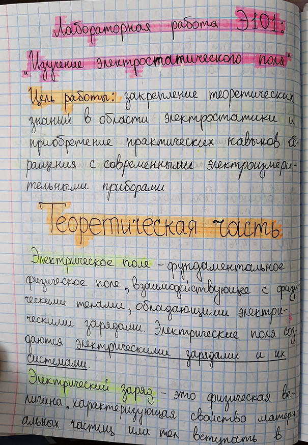 Для студентов МГТУ им. Н.Э.Баумана по предмету ФизикаИзучение электростатического поляИзучение электростатического поля