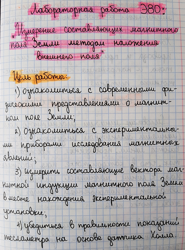 Для студентов МГТУ им. Н.Э.Баумана по предмету ФизикаИзмерение составляющих магнитного поля Земли методом наложения внешнего поляИзмерение составляющих магнитного поля Земли методом наложения внешнего поля