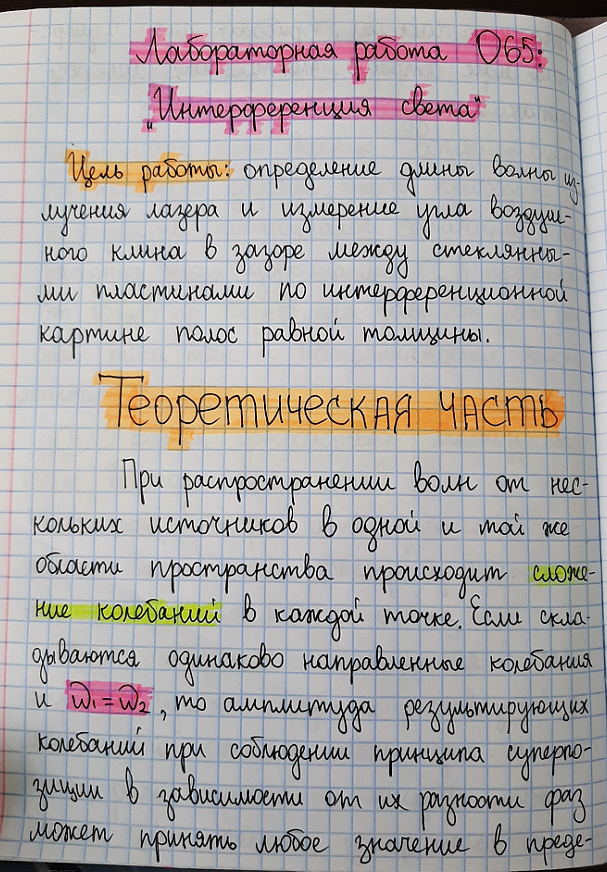 Лабораторная работа О: Интерференция света вариант 65