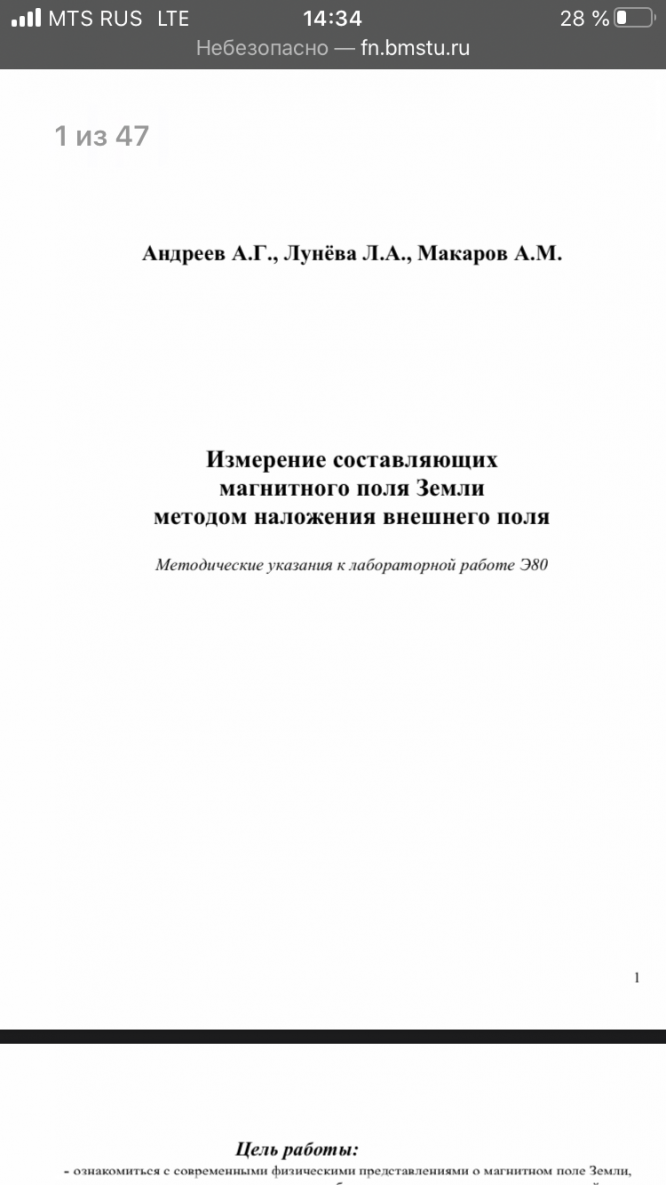 Для студентов МГТУ им. Н.Э.Баумана по предмету ФизикаИзмерение составляющих магнитного поля Земли методом наложения внешнего поляИзмерение составляющих магнитного поля Земли методом наложения внешнего поля