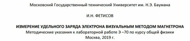 Для студентов МГТУ им. Н.Э.Баумана по предмету ФизикаИзмерение удельного заряда электрона визуальным методом магнетронаИзмерение удельного заряда электрона визуальным методом магнетрона