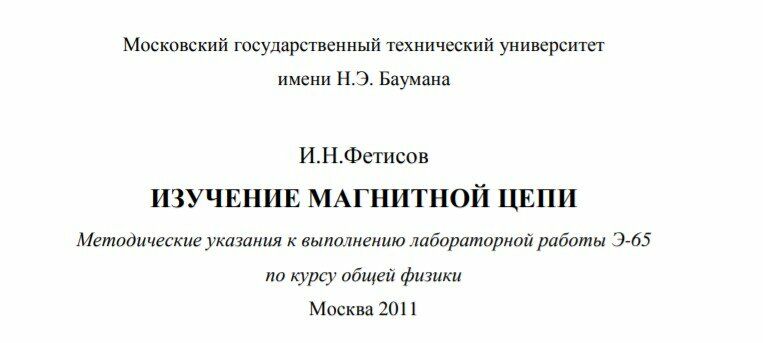 Для студентов МГТУ им. Н.Э.Баумана по предмету ФизикаИзучение магнитной цепиИзучение магнитной цепи