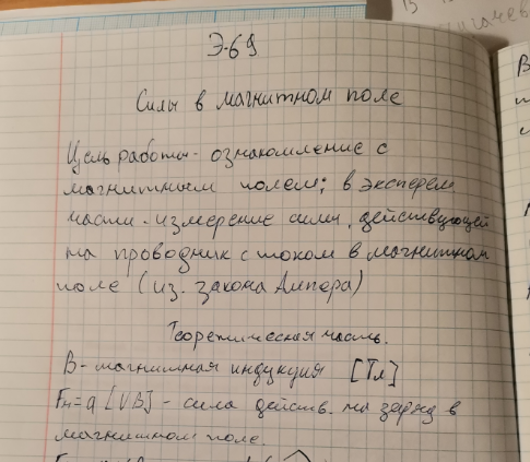 Лабораторная работа Э: Силы в магнитном поле вариант 69