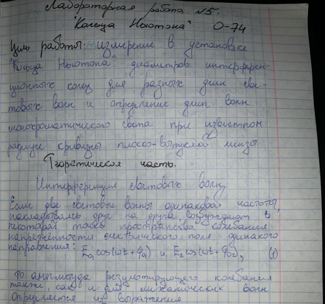 Лабораторная работа О: Кольца Ньютона вариант 74
