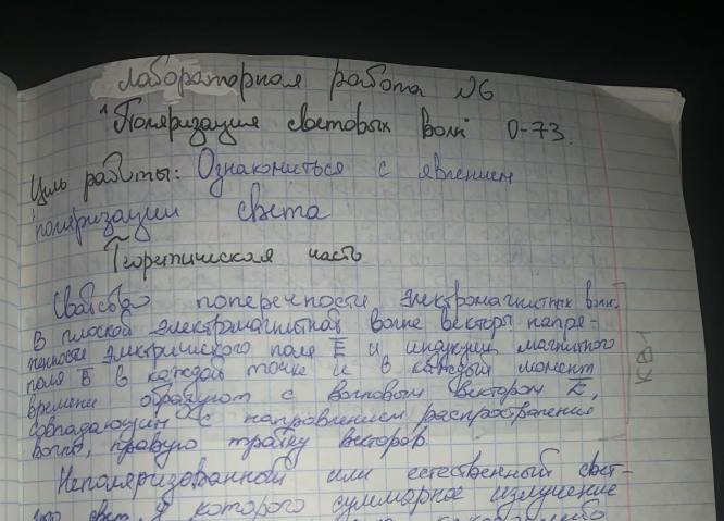 Лабораторная работа О: Поляризация световых волн вариант 73