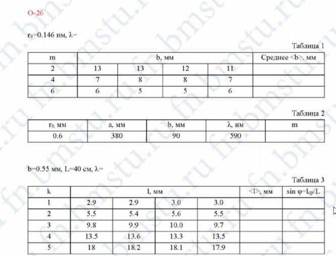 В файле полностью выполненная и зачтенная ЛР О-26 , включающая в себя расписанную теоретическую часть , экспериментальную часть с обработкой результатов , также ответы на контрольные вопросы. Ниже фотография данных использовавшихся в экспериментальной части этой работы. Ваши данные могут отличаться , но ход действий и обработка результатов везде одна.